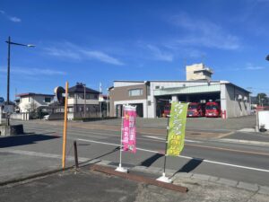 店舗の目の前に安中消防署があります。 榛名観光タクシーさんの隣の白い建物です。